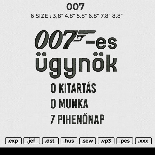 007 Embroidery File 6 size