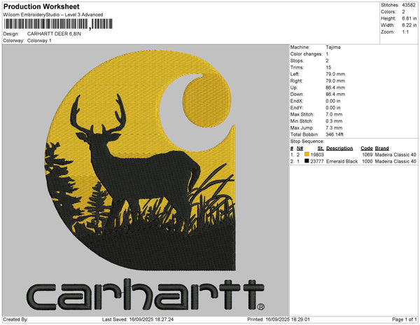 CARHARTT DEER Embroidery File 6 size