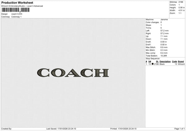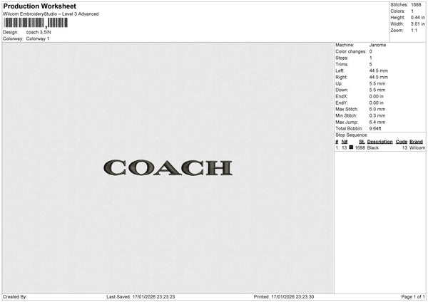 Coach Embroidery File 6 size