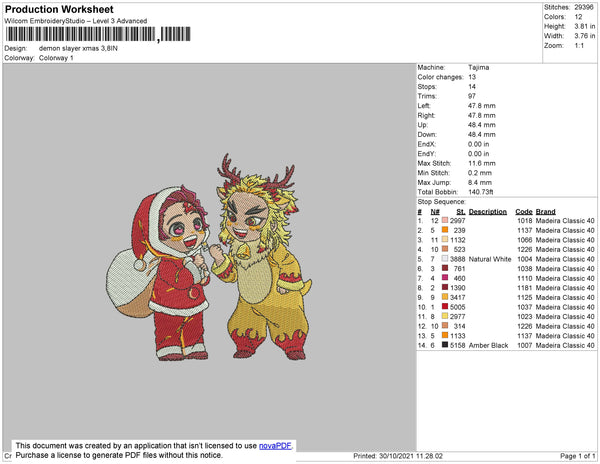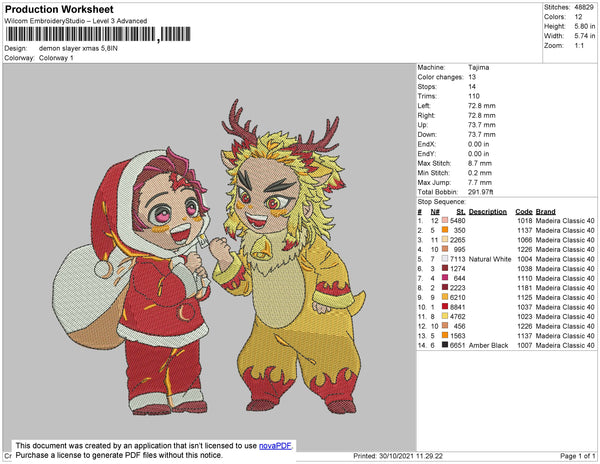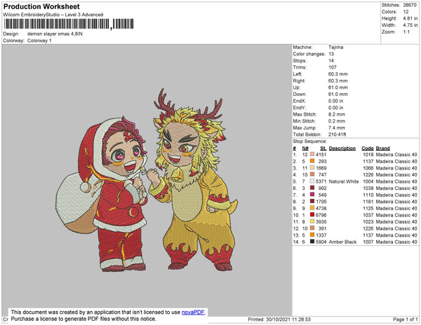 Demon Slayer Xmas Embroidery File 4 size