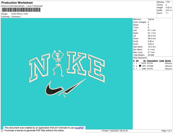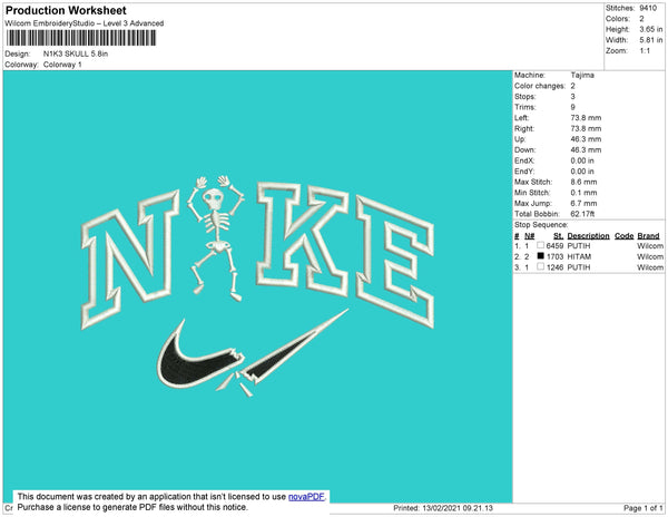 Nike Skull Embroidery File 8 Size