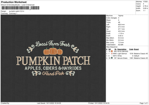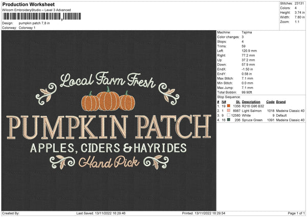 Pumpkin Patch Embroidery File 4 size