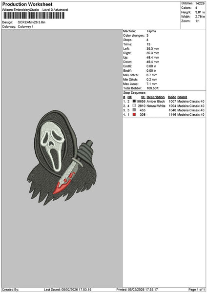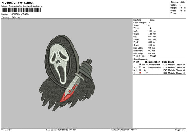 Scream V26 Embroidery File 6 sizes