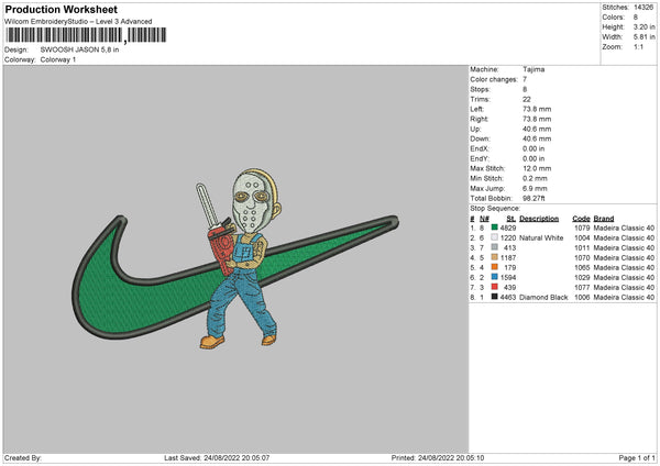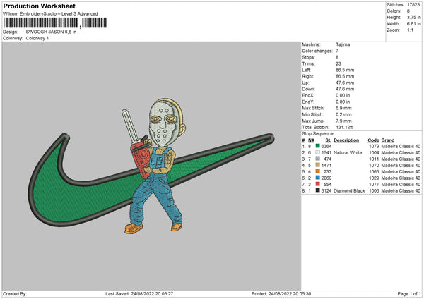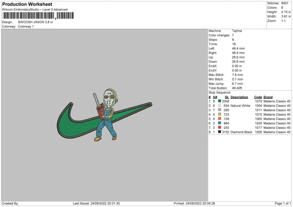 Swoosh Jason Embroidery File 5 sizes