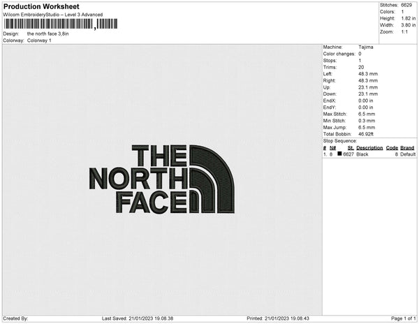 the north face Embroidery File 6 sizes